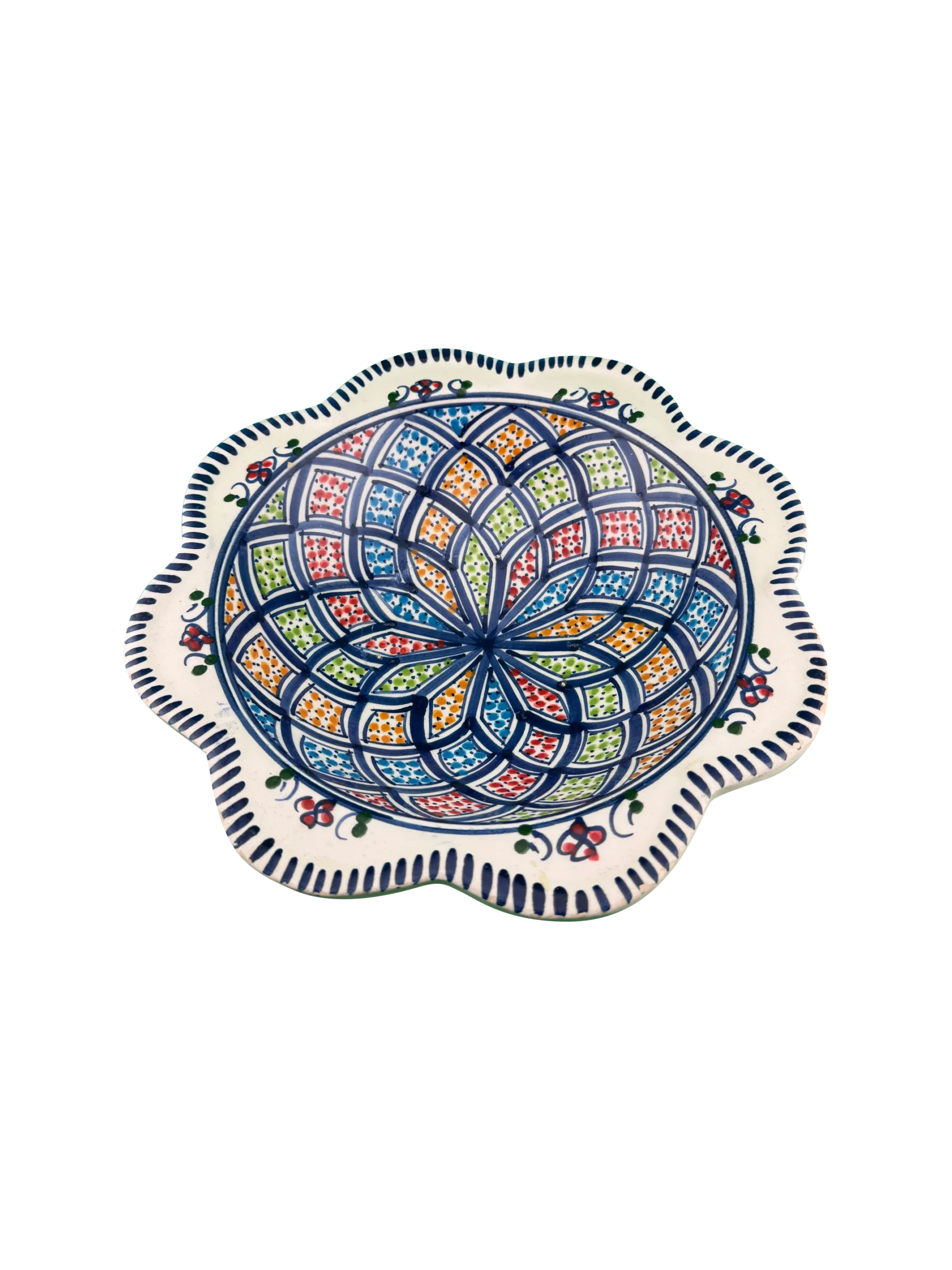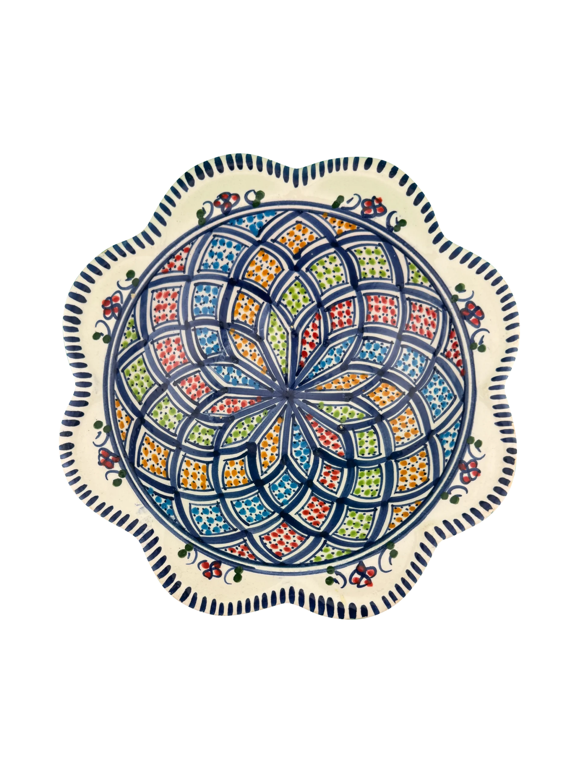 Fez Starburst Hand-Painted Ceramic Plate with Scalloped Edge